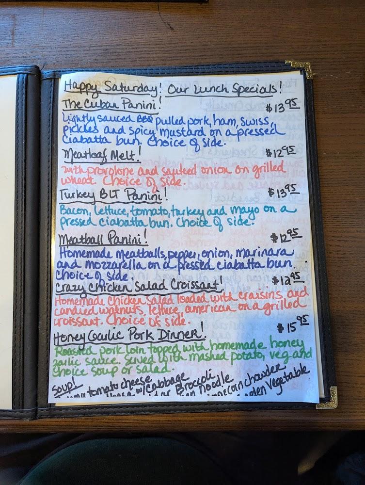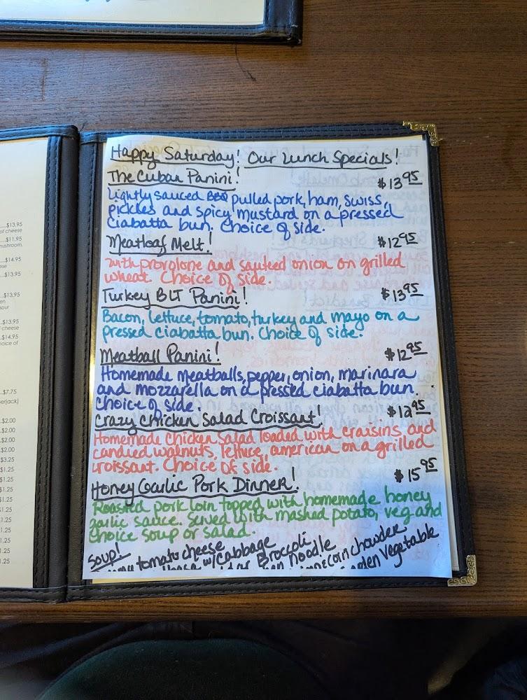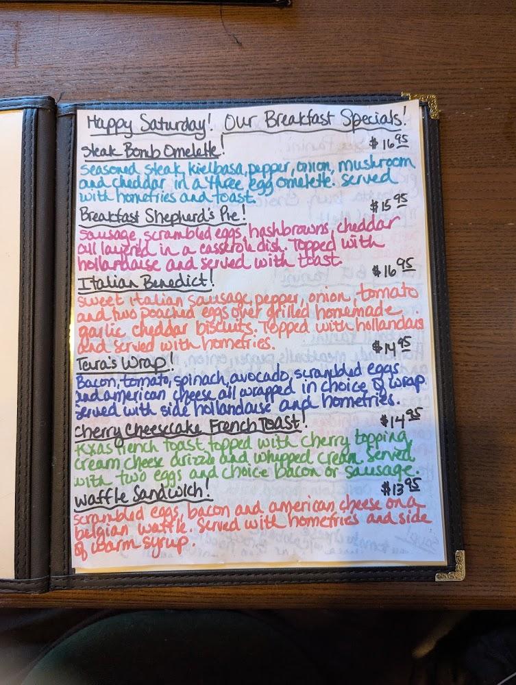 Seasonal specials and house-made treats keep the menu fresh and enticing. The lunch menu extends into hearty sandwiches and salads, ideal for midday refueling. Desserts, like their homemade cinnamon swirl bread, add a sweet touch to any meal. Combining simplicity and tradition, this establishment creates an experience, not just a meal.